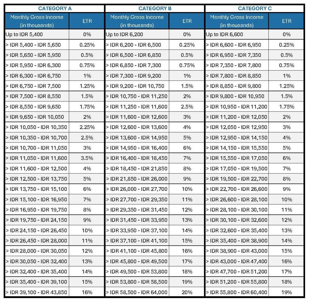 • 0.5% for daily income above IDR 450,000 up to IDR 2,500,000.